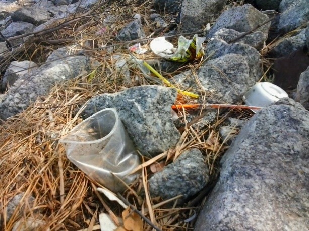 หว๊า......เสียอรรถรสในการชมบรรยากาศ น้ำใสๆ ฟ้าสวยๆ แต่พอมองที่ร่องหิน..เจออะไรอีกหว่า...