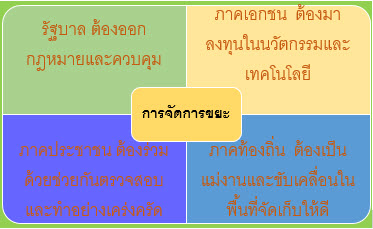 สรุปง่ายๆ ว่า การบริหารจัดการขยะ ต้องมีการร่วมมือจาก 4 ภาคส่วนด้วยกัน คือ