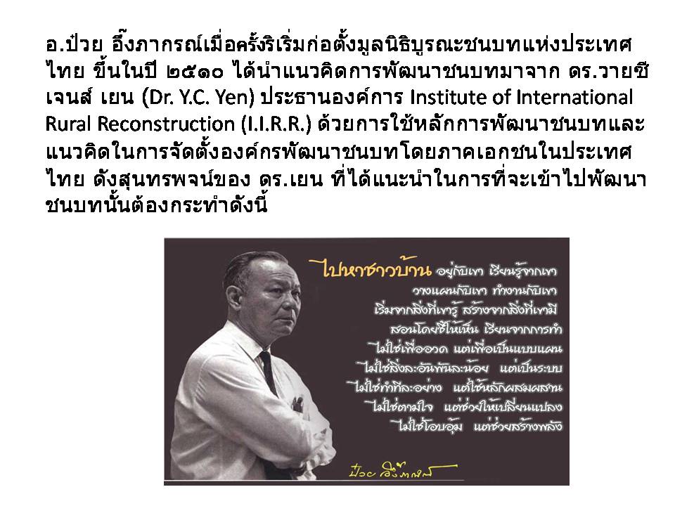 กระบวนการนี้ทำให้เกิดการปรับเปลี่ยน Mind set และ skill set ที่เท่าทันการเปลี่ยนแปลงของโลกแบบมีจุดยืนในภาคชุมชน ขณะเดียวกัน ผู้นำในภาคธุรกิจของทั้งสามบริษัท เกิดการปรับเปลี่ยนกระบวนทัศน์ที่เน้นการลดความเหลื่อมล้ำ ไปสู่ “ความยั่งยืนในการประกอบธุรกิจสู่ความยั่งยืนของการพัฒนา” (sustainable business in sustainable development) นั่นคือการริเริ่มปรับเปลี่ยนวิธีคิด วิธีปฏิบัติ สู่การพัฒนาที่ยั่งยืนร่วมกันระหว่างธุรกิจและชุมชน จะเห็นได้ว่ามีหน่วยงาน และองค์กรทั้งที่เป็นภาครัฐ ภาควิชาการ ภาคธุรกิจ ภาคประชาชน ประชาสังคมและองค์กรสาธารณะประโยชน์ที่ไม่แสวงหากำไรมากมายที่ลงไปทำงานสนับสนุนชุมชนในการพัฒนาเศรษฐกิจฐานราก และสามารถผนึกกำลังกันส่งเสริมสนับสนุนให้เกิดระบบสัมมาชีพชุมชนได้ หากมีการทำงานแบบบูรณาการและสานพลังเป็นภาคียุทธศาสตร์กันได้