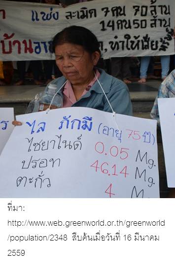 “เสียงร่ำร้อง 6 ปี จากเหมืองทองคำ 6 หมู่บ้าน ถึงศาลปกครองกลาง กรุงเทพฯ” (http://www.greenworld.or.th/greenworld/population/2348 สืบค้นเมื่อวันที่ 10 ส.ค.57)