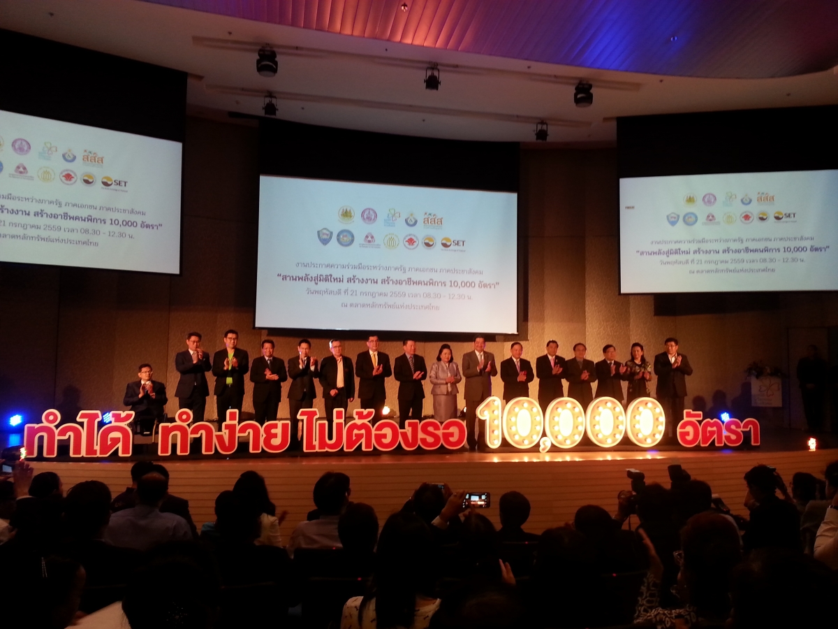 มีโอกาสร่วมงาน “สานพลังสู่มิติใหม่ สร้างงาน สร้างอาชีพคนพิการ 10,000 อัตรา”เมื่อวันที่ 21 ก.ค.2559 ณ ห้องประชุม ศ.สังเวียน อินทรชัย ตลาดหลักทรัพย์แห่งประเทศไทย จัดโดยสำนักงานกองทุนสนับสนุนการสร้างเสริมสุขภาพ(สสส.)มูลนิธินวัตกรรมทางสังคมและภาคีเครือข่าย 20 องค์กร ภาคเอกชนกว่า 200 บริษัท แม่งานหลักภาครัฐโดยกระทรวงแรงงานและสวัสดิการสังคม ร่วมกับกระทรวงพัฒนาสังคมและความมั่นคงของมนุษย์ เป้าหมายของปี 2559 คือขับเคลื่อนให้เกิดการจ้างงานผู้พิการ 10,000 คนเป็นอย่างน้อย คิดเป็นเม็ดเงินกว่า 1,000 ล้านบาท