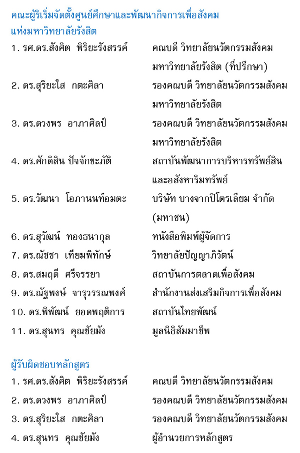 - เป็นส่วนหนึ่งของกิจการเพื่อสังคมด้านงานวิชาการในนามของมหาวิทยาลัยรังสิต