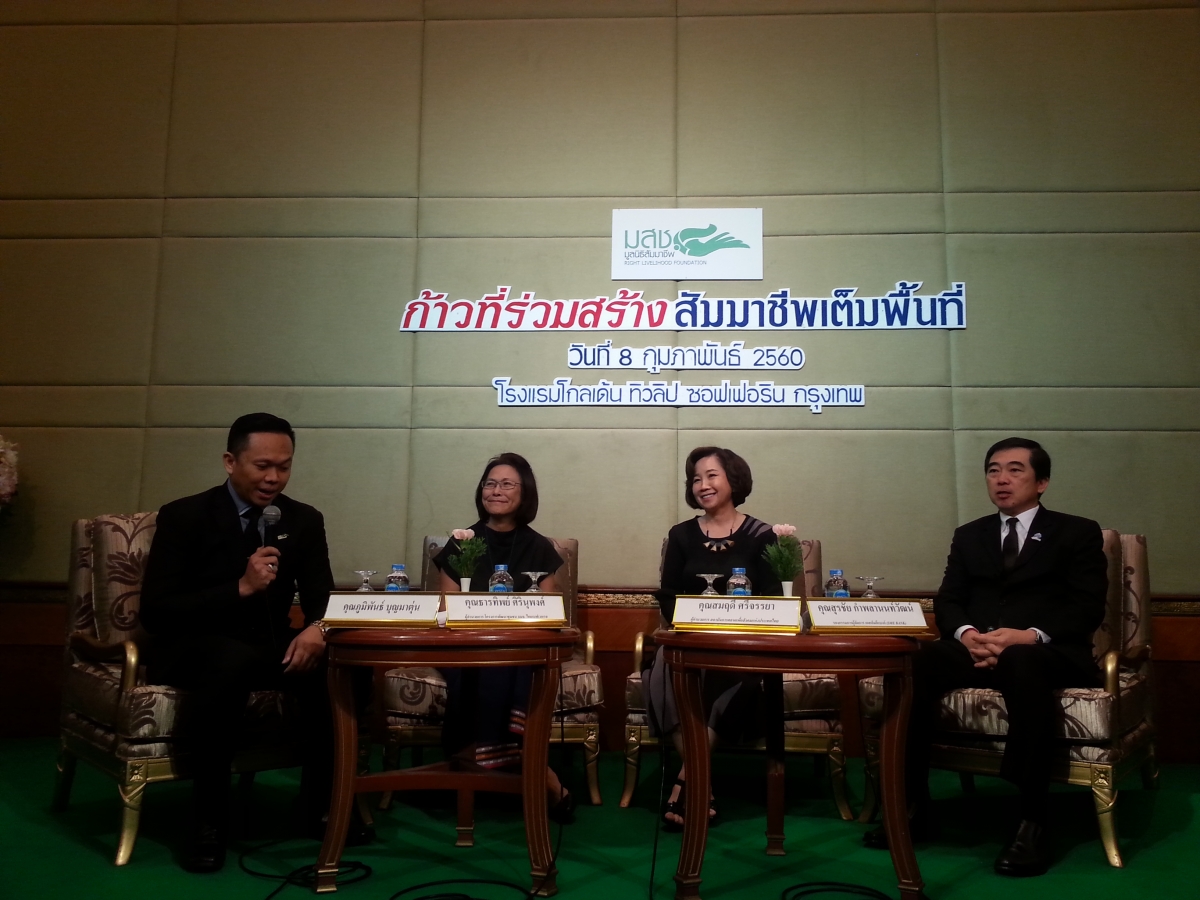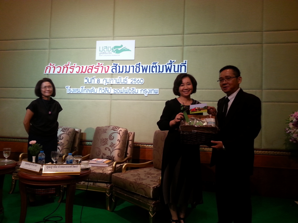 หมายเหตุ : งานตอบแทนผู้มีอุปการคุณ ประจำปี 2559 เพื่อสรุปภาพรวมการทำงาน และเลี้ยงขอบคุณผู้สนับสนุน ภายใต้ชื่องาน “ก้าวที่ร่วมสร้างสัมมาชีพเต็มพื้นที่” จัดขึ้นเมื่อวันที่ 8 กุมภาพันธ์ 2560 ณ โรงแรมโกลเด้น ทิวลิป ซอฟเฟอริน พระราม 9
