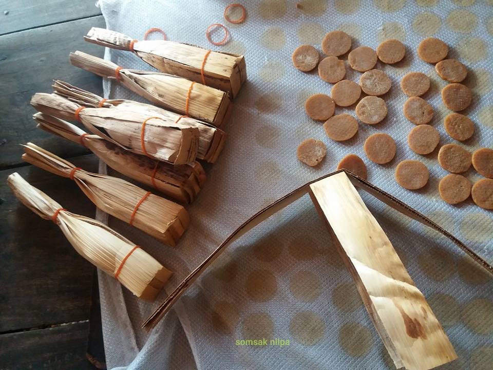 หลังจากเคี่ยวน้ำตาลในกระทะจนได้ที่ หยอดเป็นก้อนๆ วางผึ่งบนตระแกรง เมื่อผึ่งแห้งเรียบร้อย ก็จะบรรจุใส่ภาชนะแบบพื้นบ้านที่เรียกว่า “กระโสบ” ทำจากกาบใบตองหรือใบอ้อย เพื่อให้คงความหอมกรุ่นของกลิ่นน้ำตาลและไม่ให้น้ำตาลละลาย จากนั้นชาวบ้านจะนำไปวางขายทั่วไปในตลาดโนนไทย รวมทั้งร้านค้าย่อยในหมู่บ้านต่างๆ เพื่อให้ผู้ผ่านไปผ่านมาซื้อหาติดไม้ติดมือเป็นได้ทั้งของฝาก เป็นได้ทั้งของใช้ติดก้นครัว ราคาย่อมเยา “กระโสบ”หนึ่ง บรรจุ 15 แผ่น ราคา 20 บาท ถ้าซื้อที่ละมากๆก็จะตก “กระโสบ”ละ 15 บาท หรือถูกว่านั้นตามแต่ต่อรองราคากันได้