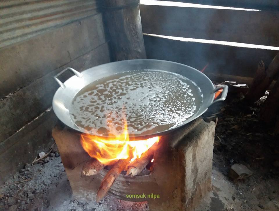 ตาหว่อ เลือกที่จะแบ่งขายเพียงบางส่วนเหลือไว้บางส่วนเพื่อนำกลับบ้าน ไปแปรรูปเป็นผลผลิตน้ำตาลก้อน