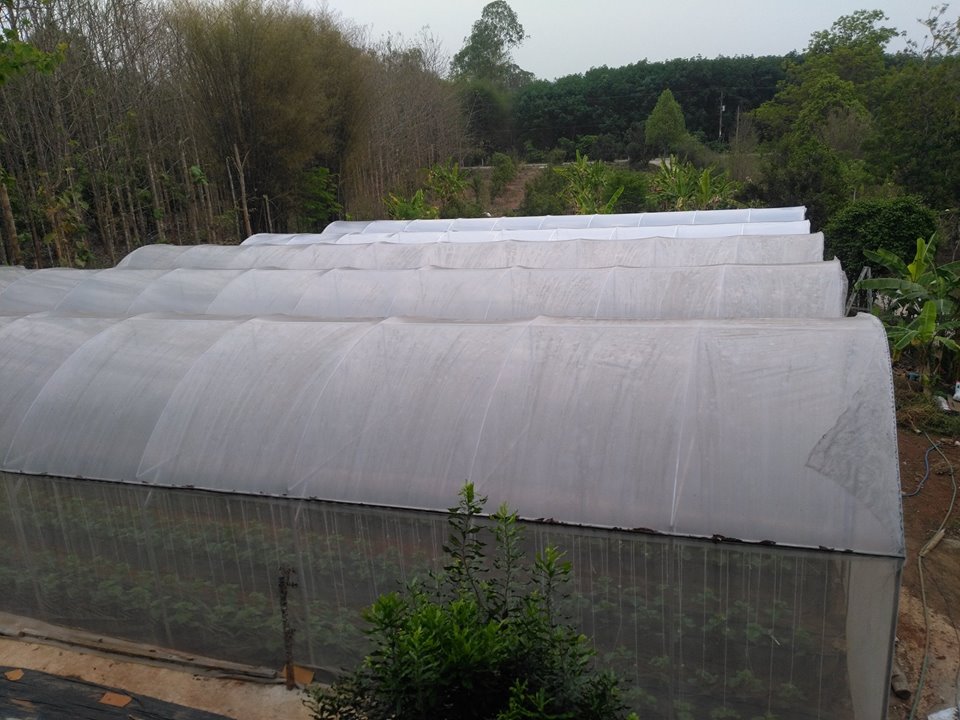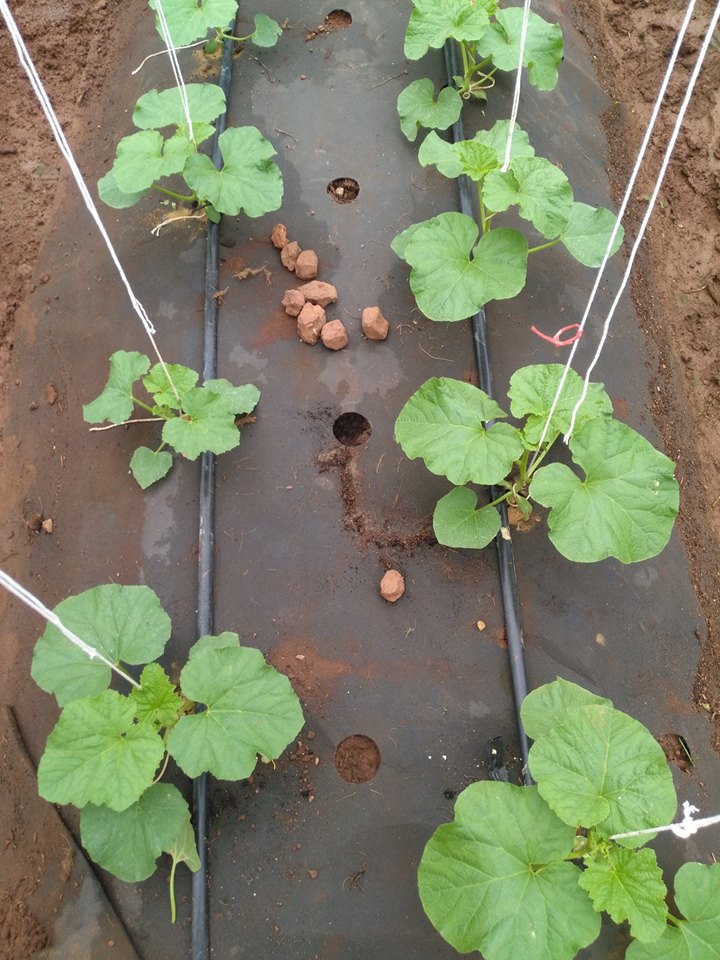 นี่เป็นตัวอย่างการปลูกเมล่อนในกระบะ บนพื้นปูน อยากบอกว่า แม้ว่าที่บ้านใคร ไม่มีที่ทางกว้างขวาง ขอพื้นที่ว่างแค่ 6x6 เมตร ทำโรงเรือนสักนิด ตั้งกระบะรูปสี่เหลี่ยมผืนผ้า กว้าง 1 เมตร ยาว 4 เมตร สูง 20 เซ็น ใช้พลาสติกขนาดใหญ่ปูรองพื้น เจาะรูสักหน่อยให้ระบายน้ำได้