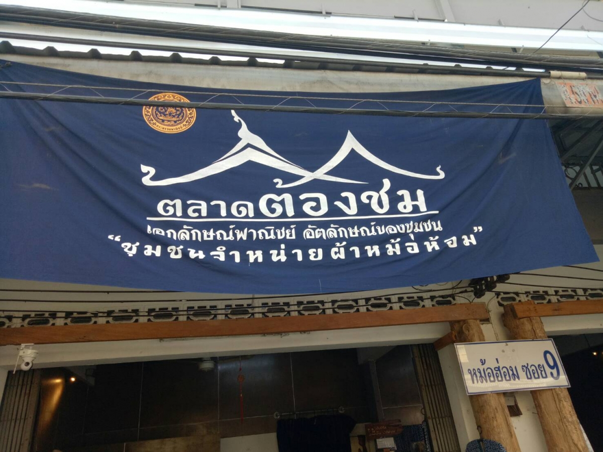 ค่อยเดินชมสินค้าไปเรื่อยๆ ผสานการพูดคุยกับพ่อค้าแม่ชาวตลาดต้องชมทุ่งโฮ้ง ที่ล้วนเป็นกันเองมีรอยยิ้มอันเป็นเสน่ห์ มีเรื่องราวเกร็ดความรู้สอดแทรกเรื่องเล่ามากมาย ชวนค้นคว้าอย่างไม่รู้จักเบื่อ ผมมาสะดุดตากับป้ายชื่อ “สหกรณ์หม้อฮ่อมทุ่งโฮ้งแพร่ จำกัด” ซึ่งเปิดเป็นศูนย์แสดงสินค้าเช่นเดียวกับร้านค้าทั่วๆ ไป แต่ที่พิเศษคือมีสมาชิกของสหกรณ์ที่ออกมาช่วยงานกันคนละไม้คนละมือ มีโซนแสดงสินค้าและแสดงผลงานของกลุ่มจัดวางไว้ให้เข้าชม