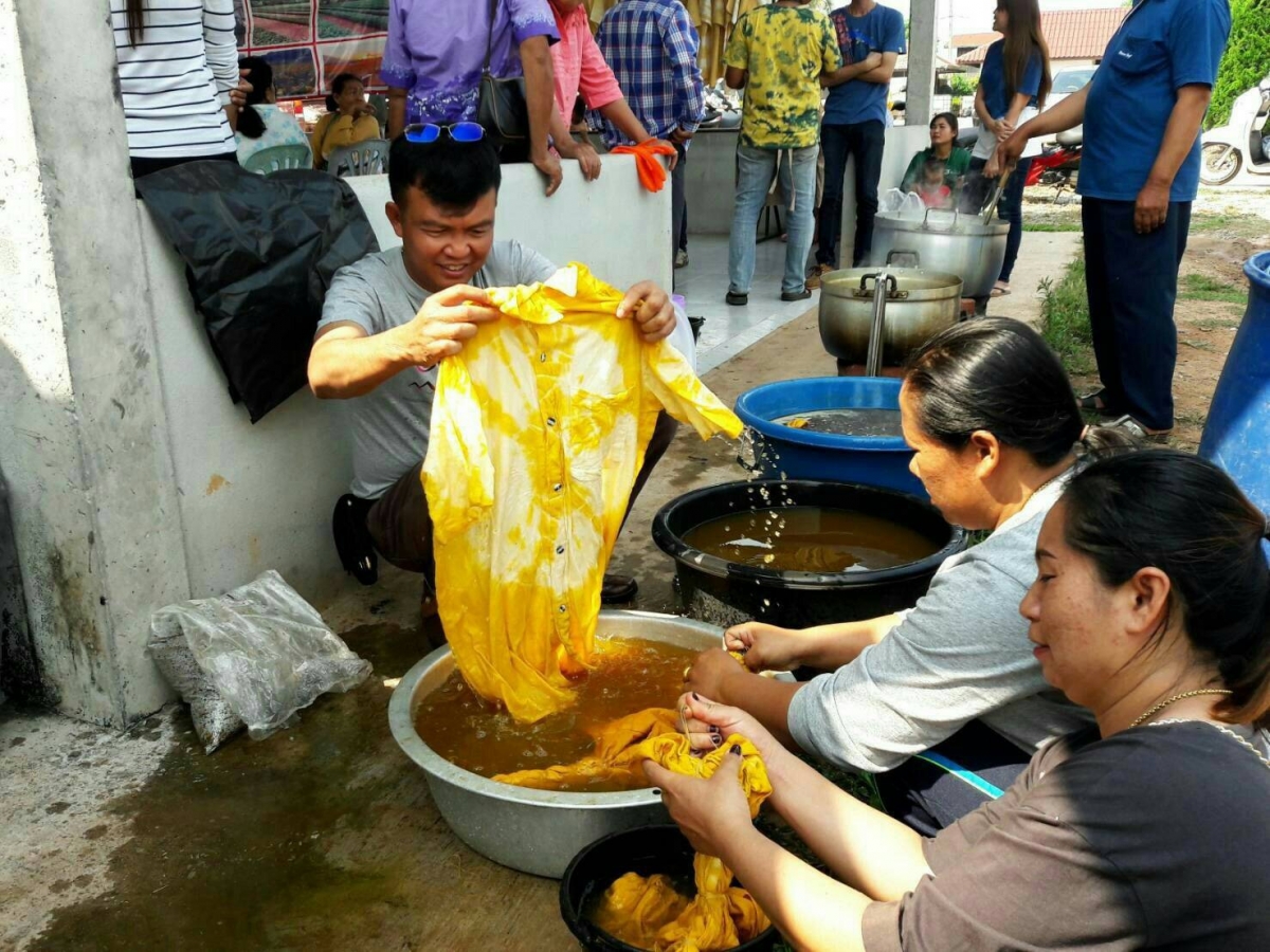 - นำผ้าที่เตรียมไว้ลงไปต้มย้อมเป็นเวลาอย่างน้อย 30 นาที
