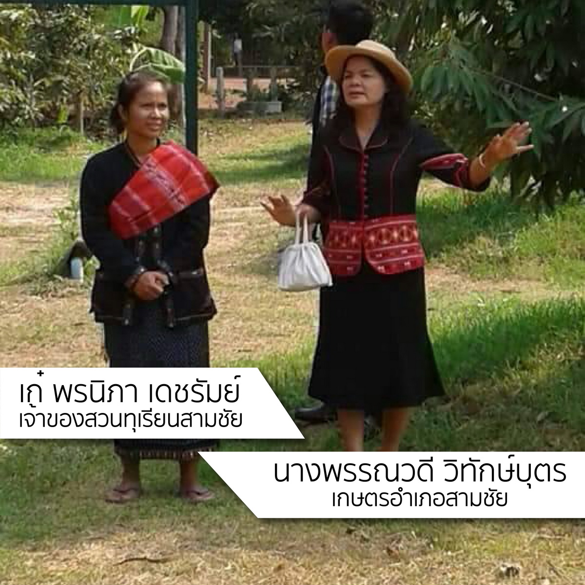 นางพรรณวดี วิทักษ์บุตร เกษตรอำเภอสามชัย จังหวัดกาฬสินธุ์ ผู้เสมือนเป็นญาติสนิทของเก๋และครอบครัว ในฐานะเจ้าหน้าที่ราชการที่ใกล้ชิดประชาชนกล่าวถึงความสำเร็จของ สวนทุเรียนสามชัยว่า