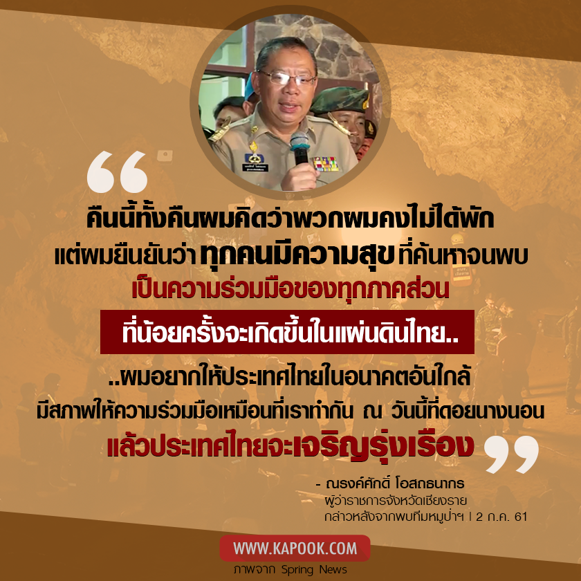 กลางดึกวันที่ 2 ก.ค.2561 คือวันที่คนไทยและคนทั้งโลก จะจดจำไปนานแสนนาน หลังจากลุ้นระทึกกับปฏิบัติการค้นหาทีมฟุตบอลหมูป่าอะคาเดมี่ทั้ง 13 ชีวิตที่ติดอยู่ภายในถ้ำเขาหลวงขุนน้ำนางนอน จังหวัดเชียงราย