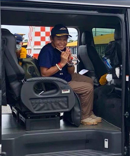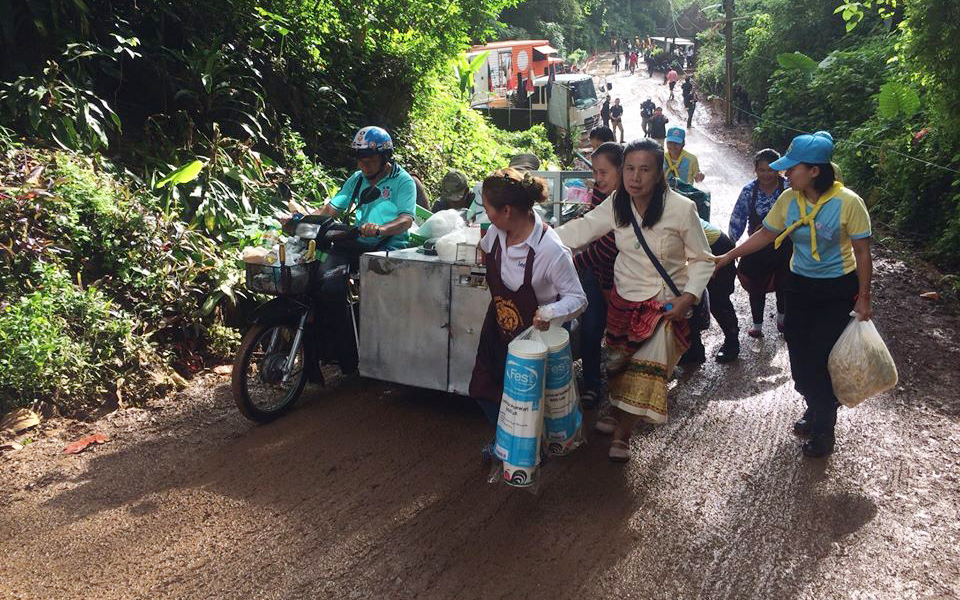 นายสมศักดิ์ ศรีเพ็ชร หรือ “เค เยาวราช” ขับรถฮัมวี่ จาก ต.บางเขน อ.เมือง จ.นนทบุรี มุ่งหน้าขึ้นไปถ้ำหลวง เป็นจิตอาสา เพื่อให้บริการ อาหารเช้า รวมถึงกาแฟสด แก่เจ้าหน้าที่ผู้ปฏิบัติงาน ณ ถ้ำหลวง
