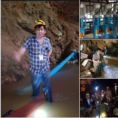 นายนภดล นิยมค้า หรือ ผู้ใหญ่ตั้น อดีตผู้ใหญ่บ้านหมู่ 8 ต.บ้านแหลม อ.บ้านแหลม จ.เพชรบุรี นำเครื่องสูบน้ำเทอร์โบเจ็ทที่มีประสิทธิภาพสูงใช้พลังงานไฟฟ้า เข้าร่วมสนับสนุนภารกิจการภายในถ้ำ ส่วนที่อยู่นอกถ้ำนั้นเป็นทีมเครื่องสูบพญานาคซิ่ง(เชื้อเพลิงน้ำมันดีเซล) ที่รวมกันมาจาก 3 จังหวัดประกอบด้วย เพชรบุรี สมุทรสาคร และนครปฐม